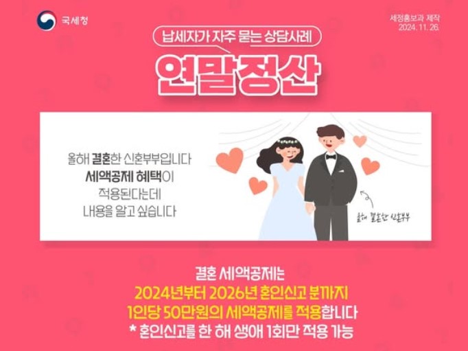 - 신혼부부는 결혼 비용(예식장, 가구, 가전제품 등)으로 카드 사용이 많아 공제 금액이 커질 가능성이 높음